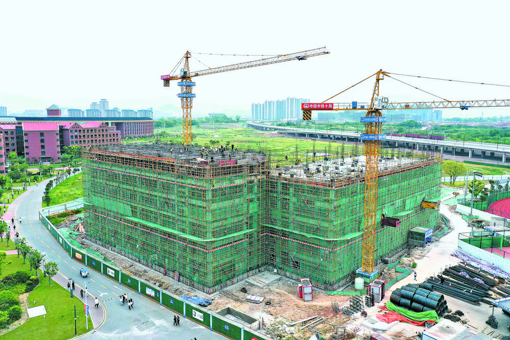 昨日,在中國計量大學(xué)現(xiàn)代科技學(xué)院二期、研究生院學(xué)生宿舍和配套設(shè)施工程(一階段)宿舍樓主體工程建設(shè)現(xiàn)場,工人們正加班加點進行主體結(jié)構(gòu)施工、二次結(jié)構(gòu)砌體、水電預(yù)埋等安裝工作。截至目前,主體工程已完成工程量的63%。 據(jù)工程相關(guān)負責人介紹,中國計量大學(xué)現(xiàn)代科技學(xué)院是雙江湖科教園區(qū)首個引進項目,二期宿舍工程作為重要配套,施工時間緊、任務(wù)重,學(xué)生期望高。為滿足2022級新生住宿需求,該工程自開工建設(shè)以來克服天氣影響、作業(yè)面狹窄、工期要求緊等難題,緊抓疫情防控和工程建設(shè),倒排施工計劃,動態(tài)調(diào)配資源,各項建設(shè)全面高效提速推進,預(yù)計今年9月底前竣工。 |