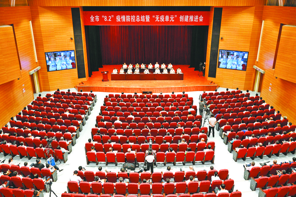 昨日下午,我市舉行“8·2”疫情防控總結(jié)暨“無疫單元”創(chuàng)建推進會,總結(jié)回顧“8·2”疫情防控非凡歷程,隆重表彰抗疫先進個人,大力弘揚偉大抗疫精神,凝聚力量、賡續(xù)奮斗,鞏固拓展抗疫成果,堅決防住疫情、穩(wěn)住經(jīng)濟、安全發(fā)展,以優(yōu)異成績迎接黨的二十大勝利召開。 市委書記王健出席并講話。市委副書記、市長葉幫銳主持會議。丁政、陳小忠等市四套班子領(lǐng)導,集聚區(qū)管委會主任、法檢兩長、其他副縣級以上干部參加會議。 會議宣讀了“8·2”疫情防控個人記功、嘉獎及戰(zhàn)疫沖鋒手等文件,并對先進代表進行頒獎。會上,婦保院黨委副書記、副院長吳麗麗,公安局刑偵大隊教導員張俊才,上溪鎮(zhèn)溪田村黨支部書記、村委會主任沈永強等先進代表發(fā)言,民政局、江東街道、福田街道下駱宅社區(qū)作“無疫單元”創(chuàng)建單位表態(tài)發(fā)言。 王健指出,“8·2”疫情是全省首次迎戰(zhàn)奧密克戎新變異毒株BA.5.2,是首日發(fā)現(xiàn)時已局部區(qū)域規(guī)模性暴發(fā)的遭遇戰(zhàn),是全省抗擊疫情人數(shù)最多、環(huán)境最復雜的一次,是全省核酸檢測、轉(zhuǎn)運隔離、物資保障任務(wù)最重的一次,是統(tǒng)籌戰(zhàn)疫情和抓經(jīng)濟的一次實戰(zhàn)實踐。疫情突如其來,挑戰(zhàn)前所未有。省委省政府高度重視、全程指導、頂格支持,省委書記袁家軍和省委副書記、省長王浩多次視頻連線、作出批示,并在關(guān)鍵時刻親臨義烏指導工作,副省長成岳沖坐鎮(zhèn)義烏指揮調(diào)度;省市相關(guān)部門、專家和全省各地攜手同心、傾力相助;金華市委市政府強力統(tǒng)籌、提級管理,主要領(lǐng)導每日現(xiàn)場研判部署;全市上下同心同向,同病毒賽跑,同病毒較量,用最短時間打贏了一場艱苦卓絕的人民戰(zhàn)爭。王健代表市四套班子,向為這次抗疫斗爭作出重大貢獻的所有人員表示最崇高的敬意,向在抗疫斗爭中給予義烏支持和援助的省市相關(guān)部門、兄弟縣市以及廣大熱心企業(yè)、愛心人士表示最衷心的感謝,向依然堅守在常態(tài)化疫情防控一線的廣大抗疫工作者表示最誠摯的問候。 王健指出,回顧“8·2”疫情,每天都有前所未見的困難挑戰(zhàn),每天都有可歌可泣的感人故事,每天抗疫進展牽動了所有人的心。面對大戰(zhàn)大考,我們視使命如生命,堅決堅定,扛起主責,牢牢掌握戰(zhàn)疫主動權(quán);勇于突破常規(guī),以快制快,以變應(yīng)變,竭盡全力斬斷病毒傳播鏈;堅持人民至上,群防群控,聯(lián)防聯(lián)控,全面打好人民戰(zhàn)爭;注重統(tǒng)籌兼顧,精準施策,科學調(diào)度,著力穩(wěn)住發(fā)展基本盤;赝@段歷程,醫(yī)務(wù)人員白衣執(zhí)甲、逆行出征,黨員干部挺身而出、慷慨前行,各地各界關(guān)山相守、風雨同舟,義烏人民守望相助、同心同行,譜寫了一曲蕩氣回腸、波瀾壯闊的英雄贊歌。我們要更加堅定擁護“兩個確立”、堅決做到“兩個維護”,確保習近平總書記重要講話和重要指示精神第一時間在義烏落地生根、開花結(jié)果;要扛旗爭先高水平打造內(nèi)陸開放樣板,在奮力推進“兩個先行”征程中彰顯義烏擔當和力量;要毫不放松抓好穩(wěn)進提質(zhì)、除險保安、塑造變革,以超常規(guī)的舉措把損失搶回來、把時間搶回來、把發(fā)展搶回來;要全心全意以百姓心為心,切實解決群眾“急難愁盼”,做群眾的知心人、暖心人;要持之以恒加強黨的建設(shè),進一步擦亮義烏干部品牌,打造“真理味道、信仰之源”政治高地。 王健強調(diào),“8·2”疫情雖然打了勝仗,但也付出了慘重的代價,暴露出工作中存在一些不足。當前,國內(nèi)外疫情形勢依然嚴峻復雜,疫情防控還遠沒有到可以歇腳放松的時候。全市上下必須要深入貫徹“外防輸入、內(nèi)防反彈”總策略和“動態(tài)清零”總方針,按照“七大機制”“五快循環(huán)”指引,不斷總結(jié)“8·2”疫情經(jīng)驗教訓,加強防疫能力建設(shè),慎終如始抓好常態(tài)化疫情防控,牢牢守住不發(fā)生規(guī)模性反彈底線。目前最緊迫、最關(guān)鍵的任務(wù)是“無疫單元”創(chuàng)建。要充分認識“無疫單元”創(chuàng)建的重要意義,“無疫單元”創(chuàng)建是貫徹落實中央、省市要求的具體行動,是做好常態(tài)化疫情防控的關(guān)鍵抓手,是提升基層治理能力的基礎(chǔ)細胞。要系統(tǒng)化全域推進“無疫單元”創(chuàng)建,重點實施“1+9+N”,圍繞“年底前全域建成”一個總目標,統(tǒng)籌推進組織體系、清村掃樓、風險人員排查管控、重點行業(yè)人群核酸檢測、重點人員健康監(jiān)測、疫苗接種、場所包聯(lián)巡查亮牌、視頻監(jiān)控安裝、應(yīng)急處置能力建設(shè)9個全覆蓋,加快無疫社區(qū)(村)、無疫機關(guān)、無疫企業(yè)、無疫校園、無疫市場、無疫工地、無疫賓館、無疫餐飲店、無疫場館等各類無疫場景創(chuàng)建。要強化保障確!盁o疫單元”創(chuàng)建取得實戰(zhàn)實效,加強組織領(lǐng)導,細化指引方案,強化督導考核,確保創(chuàng)建活動抓出實效、抓出平安、抓出放心。 葉幫銳強調(diào),要認真學習貫徹本次會議精神,第一時間傳達到每一個支部、每一名黨員和廣大人民群眾。要堅決做好“無疫單元”創(chuàng)建,以最高標準