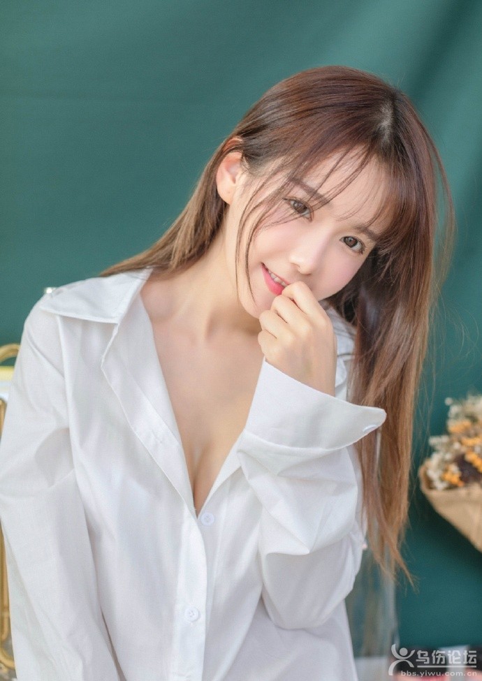性感嬌嫩美女白色襯衫低胸撩人寫真圖片